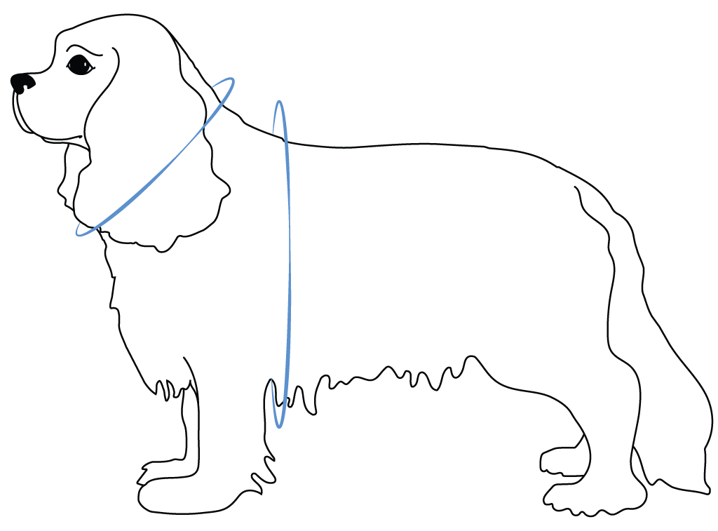 • The chest circumference should be taken around the widest part, just behind the front legs.