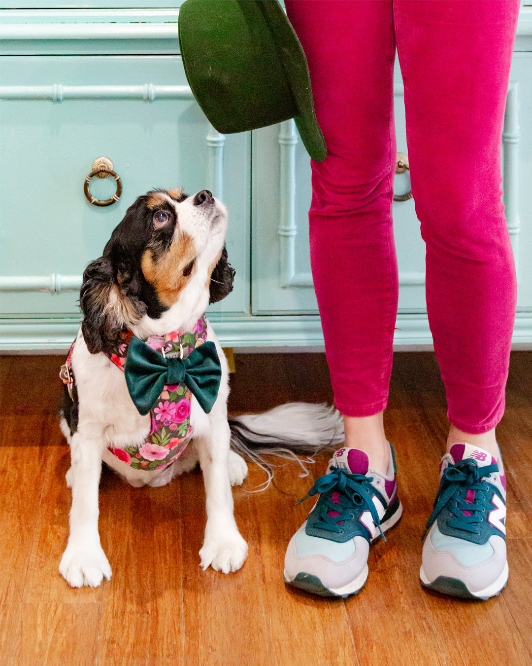 The Wag & Wonder Signature Design gives your pup the option to wear a bow or bow tie on the collar OR the harness interchangeably. Pretty simple, right! You can attach the same bow or bow tie the collar and then move it to the harness depending on your style needs for the day. Strutting your stuff on the town…put the bow tie on the harness. Hosting a party at home, put it on the collar.